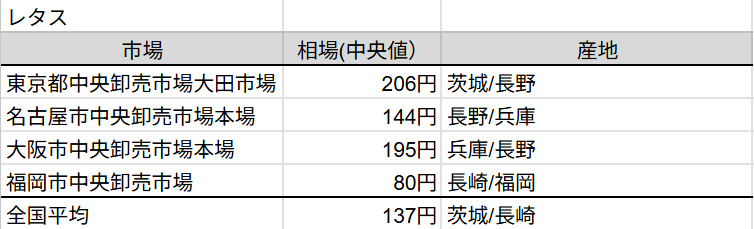 5月3日(月)時点での各市場の相場と全国平均になります。